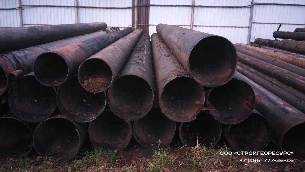 На нашу металлобазу в Подмосковье пришла партия труб б/у 530 мм. Это ходовой диаметр для шпунтовых и свайных работ, подходит для целей армирования фундамента, под футляр, закладные опоры и другие цели.